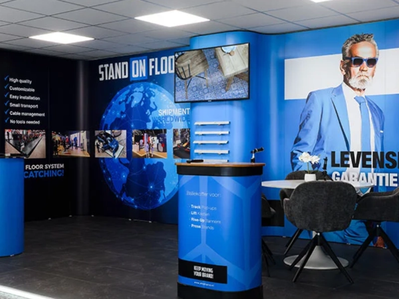 Hoe werkt het beurswand systeem voor flexibele presentaties?